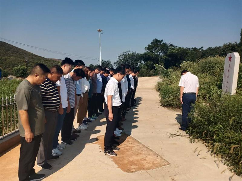 默哀结束后,各支部党员代表抬起花篮,缓步行进至烈士墓前,将花篮一字摆放。敬献花篮后,全体人员一起缓步瞻仰烈士碑,将寄托着缅怀之情的菊花轻放在烈士碑前。