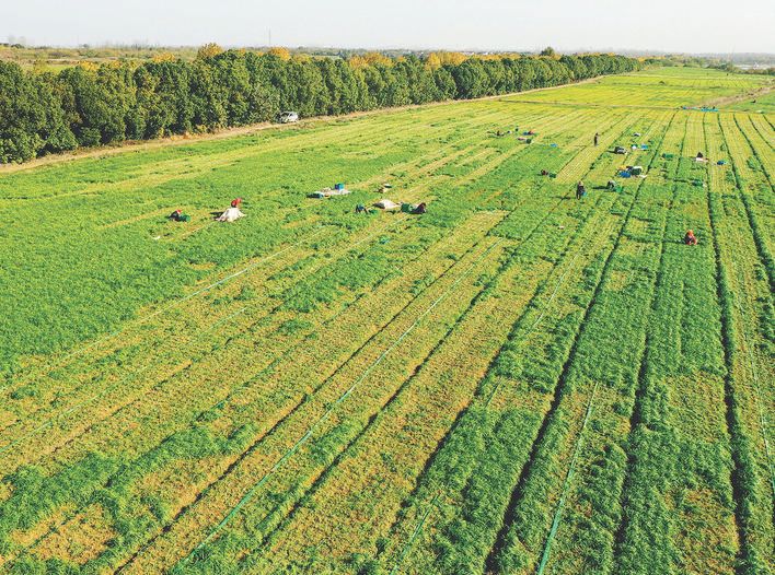 初冬时节,在巢湖市烔炀镇巢湖村坤健无农残韭菜种植基地,成片相连的韭菜田里,一簇簇翠绿的韭菜长势喜人,空气中弥漫着阵阵韭菜的辛香。收割、分拣、打捆、称重,到处是村民们忙碌的身影。