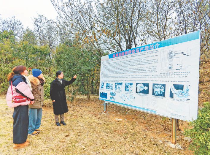 12月25日上午,巢湖天马国际旅行社总经理董群与公司荒野科学自然教育团队两位老师,来到位于马家山的巢湖龙动物群化石产地,为中小学生地质研学游制定规划。这也是她多年来一直在坚持的事,通过倡导科学旅游的理念进一步丰富巢湖旅游产品,推动巢湖地质遗迹保护,使“地质公园”和“地学研学”成为巢湖旅游新名片。