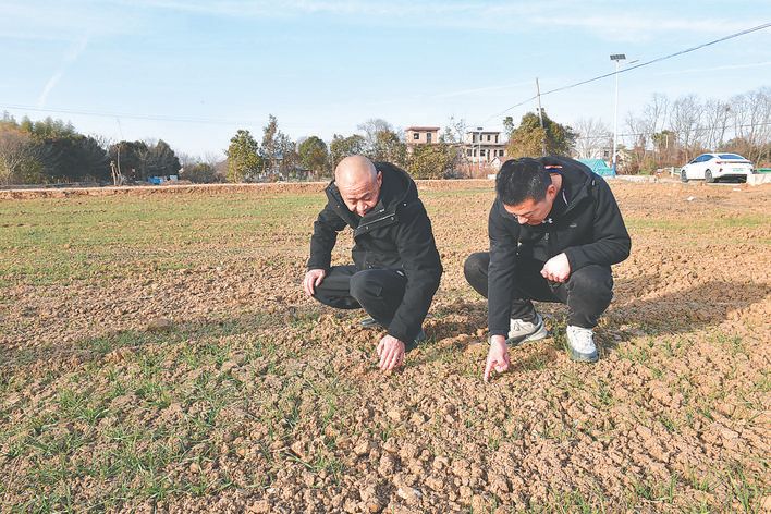 小寒时节,午后阳光普照,但依然寒气逼人。种粮大户范强站在田埂上,查看着自己承包的高标准农田里小麦出苗期长势,心里暖意融融。