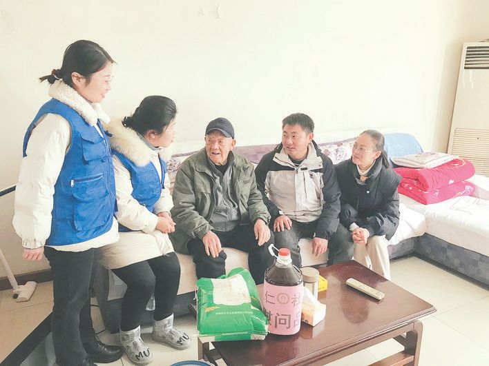 王芳和志愿者去看望慰问李洪启爷爷(资料图)。