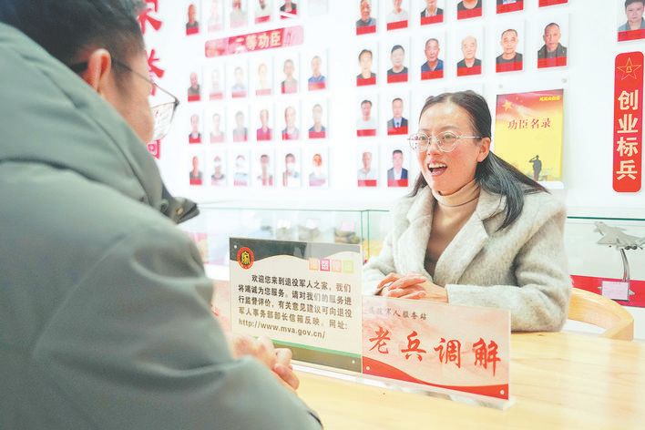 “我们辖区内目前有6135名退役军人,321名优抚对象,一等功1个,二等功22个……”说到凤凰山街道退役军人相关情况,王芳如数家珍。哪位老兵符合什么样的优抚政策,怎样利用现有政策照顾到每一位优抚对象……退役军人服务保障工作是政策性很强、标准要求很高的工作,王芳努力学习相关政策,千方百计为他们排忧解难,为退役军人提供优抚帮扶、就业创业、政策解答、权益维护等各类服务。“到站里来的退役军人,和他们唠一唠家常话,听一听烦心事,问一问啥需求,双方的距离就近了,很多矛盾自然就大事化小、小事化了。”王芳笑着说,虽然凤凰山街道安置的退役军人人数全市最多,但矛盾纠纷却很少。
