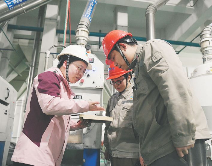 2月21日下午4时许,在中粮米业(巢湖)有限公司,身着粉色工装的王佳庆在大米加工车间,从米斗里抓起一把米,对现场负责人说:“安全生产是保障,质量把控是关键,每一步都要严守标准。”