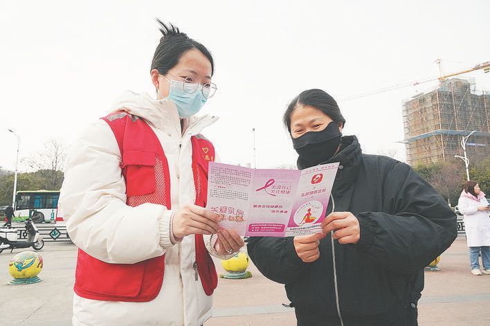 上午8时许,社区卫生服务中心医务人员和街道志愿者在信泰广场摆设宣传台和展板,悬挂横幅并向过往群众散发宣传单,宣传“两癌”免费筛查政策。“乳腺癌高风险人群有哪些,如何降低发病风险?”“宫颈癌有什么症状,哪些危险因素与宫颈病变有关?”宣讲中,工作人员还耐心讲解“两癌”防治知识,强调“早发现,早诊断,早治疗,早康复”的重要理念,动员适龄妇女积极参与免费筛查。当天,中心下属7个社区卫生服务站和3个村卫生室也同步开展了“两癌”筛查宣传活动。