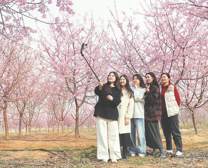 不少游客漫步花海中,或驻足拍照,或闭目闻香,尽情享受着大自然赋予的这份美好。“早就听说这里的樱花很美,今天亲眼看到,果然名不虚传。这里的樱花品种丰富,开得特别灿烂,拍照特别出片。”来自南京的游客刘女士兴奋地说。