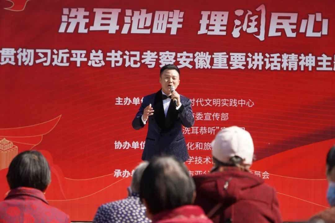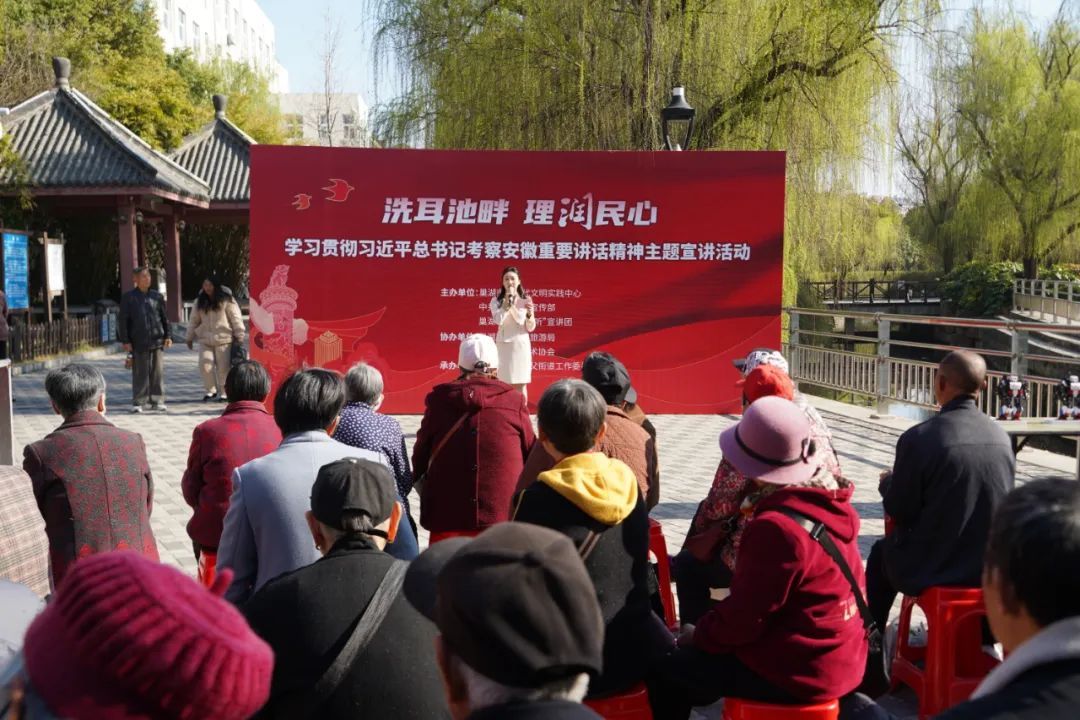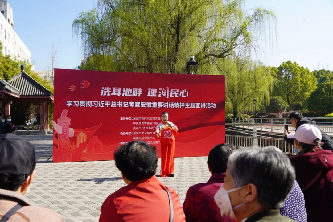 3月21日上午,巢湖市亚父街道洗耳池公园内鸟语花香、人声鼎沸。集理论宣讲、文艺演出、科普互动、健康义诊于一体的“洗耳池畔 理润民心——学习贯彻习近平总书记考察安徽重要讲话精神”主题宣讲活动正热烈展开。本次活动由巢湖市新时代文明实践中心、市委宣传部主办,市文旅局、市科协协办,亚父街道党工委承办。
