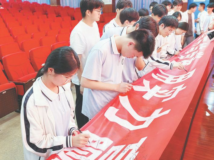 当天的活动主要包括诚信考试集体宣誓以及诚信考试签名活动。在宣誓环节中,同学们表示,会做到文明应考、自觉遵守考场纪律,营造诚实守信、公平公正的考试环境。随后,同学们在“用诚信书写答卷 用实力赢取未来”的宣传横幅上签名明志,承诺杜绝舞弊行为。高三(1)班的翟超同学作为代表进行发言,他表示,对于学生来说,诚信考试是最基本的要求,他号召同学们用诚信书写青春华章、用汗水铸造美好未来。