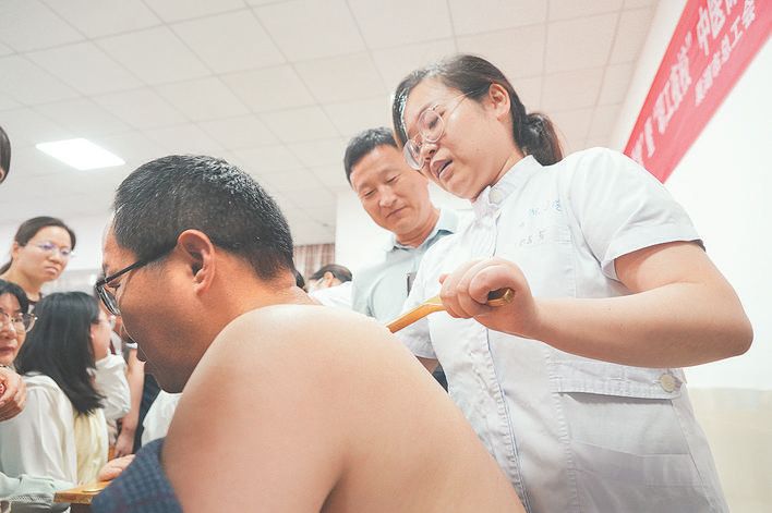培训结束后,学员们纷纷上前咨询中医保健问题,吴安源一一耐心给予解答。现场还安排了专业人员演示了耳穴压丸和刮痧,学员们踊跃体验感受。“今天不仅学到了不少中医知识,还体验了刮痧,感受到了中医特有的魅力。”一位学员激动地说。